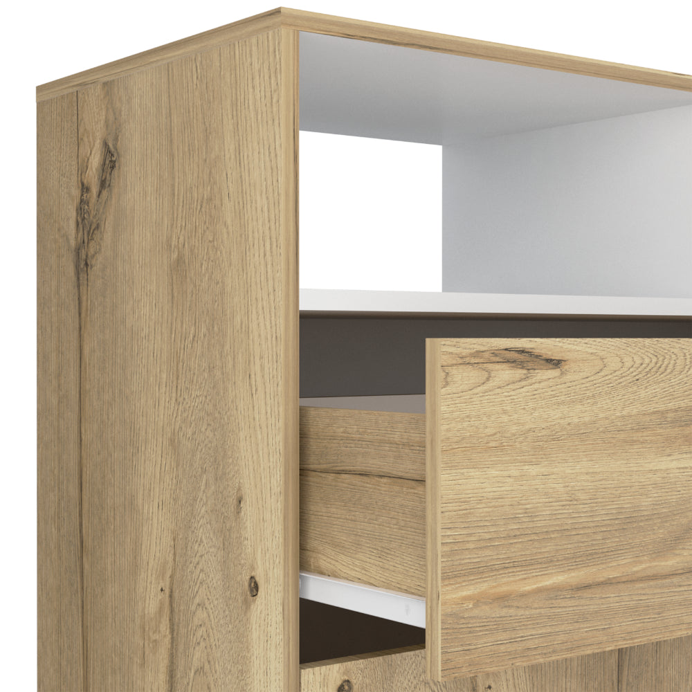 Elaborado en Madera aglomerada MDP, recubierta con láminas melamínicas de excelente calidad, en color Café Claro y Blanco.