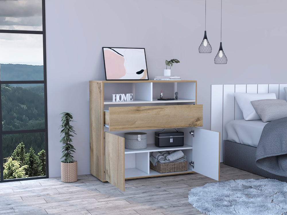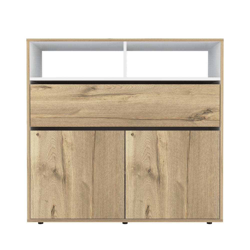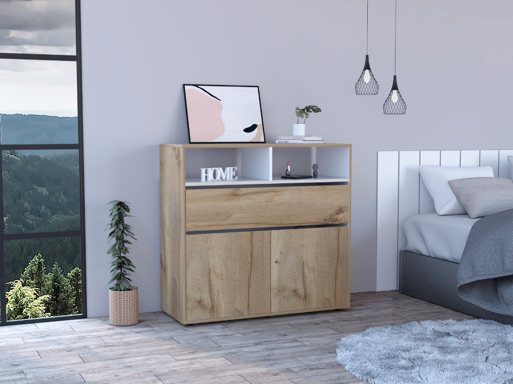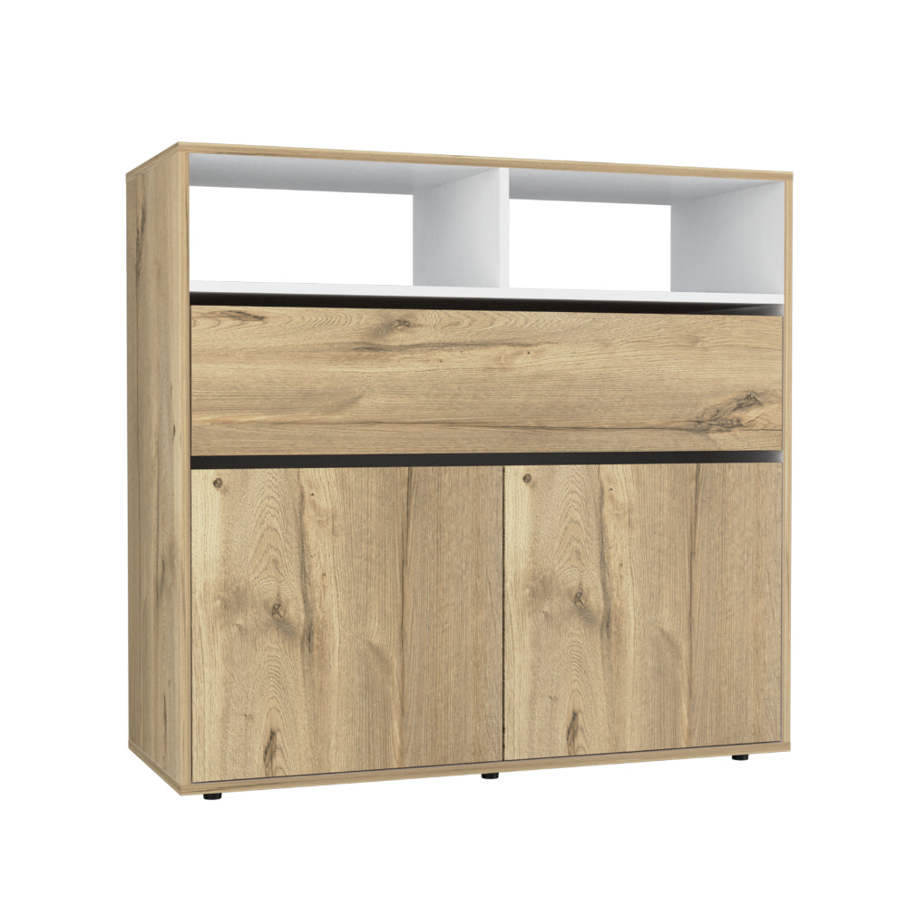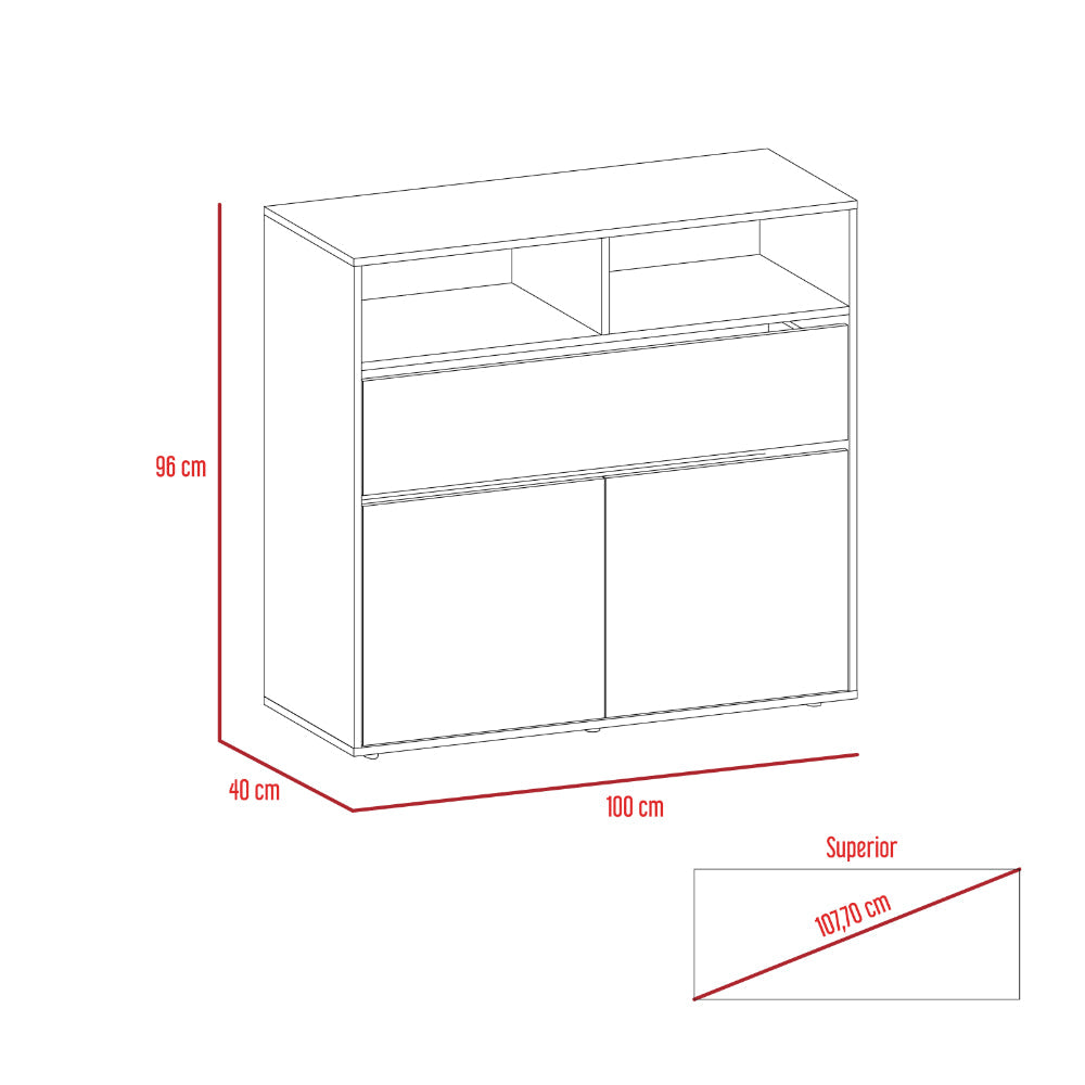 Organizador, con un cajón, dos puertas abatibles, diseño moderno, fácil armado.