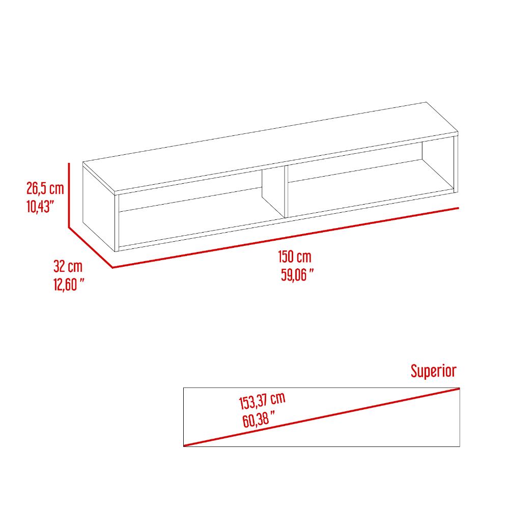 Repisa Flotante, con espacio para ubicar objetos decorativos, equipos de audio video, entre otros. Máximo 65 pulgadas