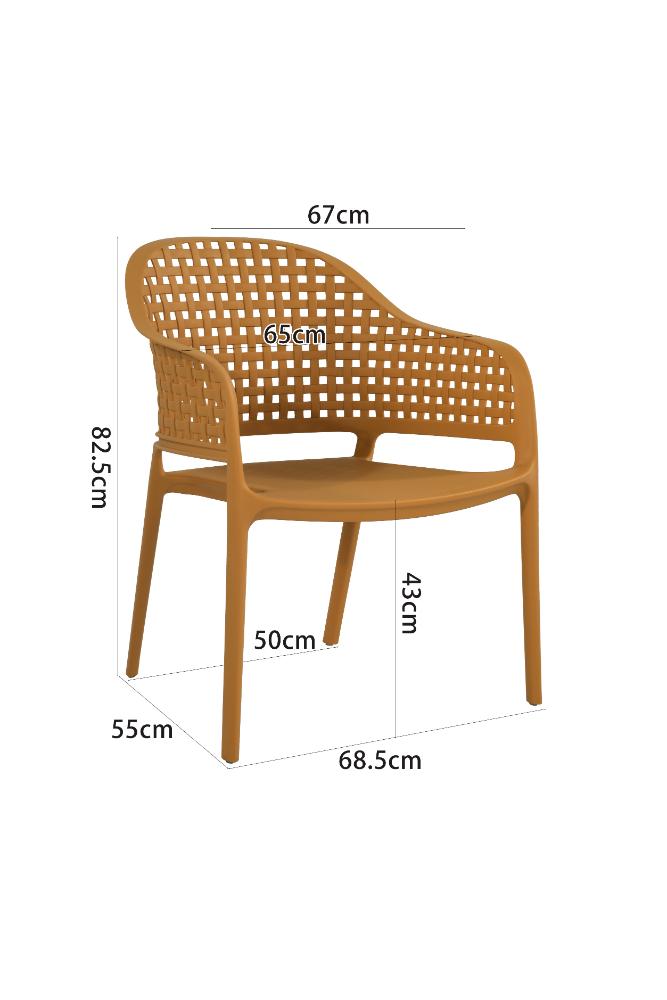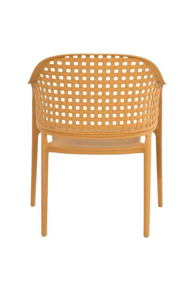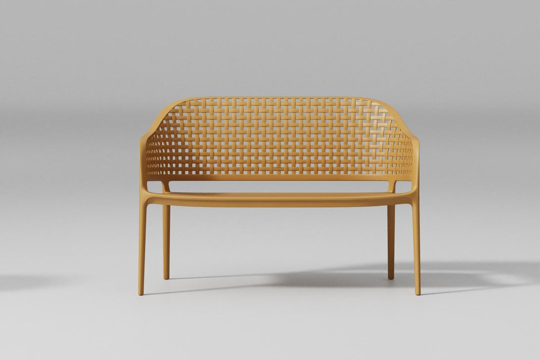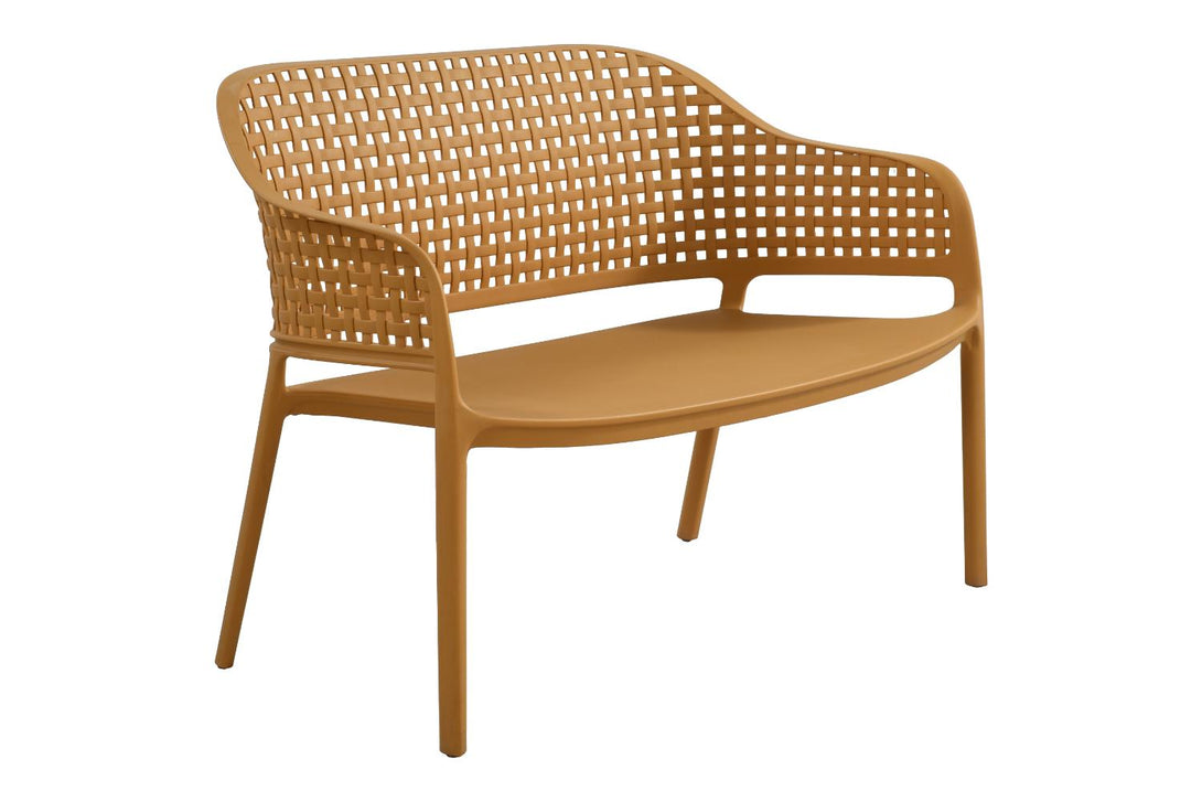 Elaborado en Polipropileno y protección a los rayos UV el set incluye mesa centro, dos sillas y un banco, en Color Naraja