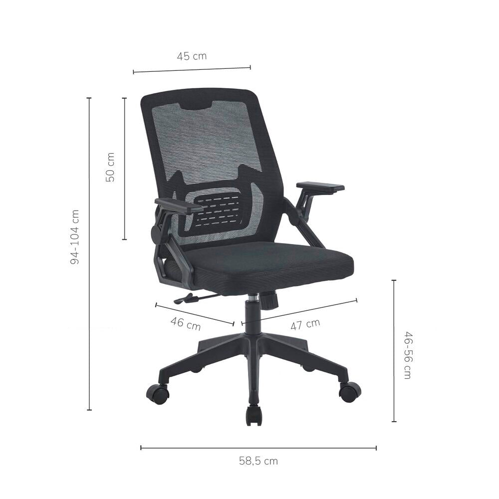 Dimensiones: 45 cm ancho x 50 cm alto x 94-104 cm alto del respaldo al suelo