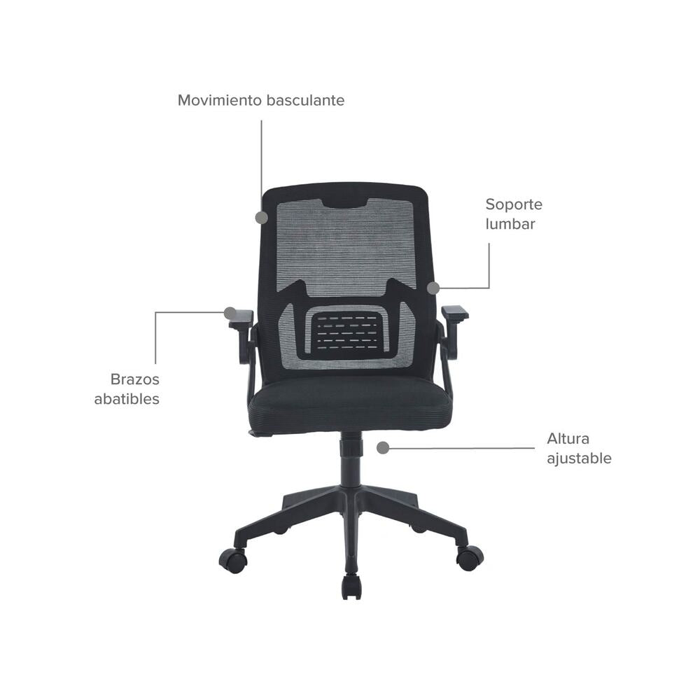 3. Brazos: abatibles elaborados en polipropileno color negro.