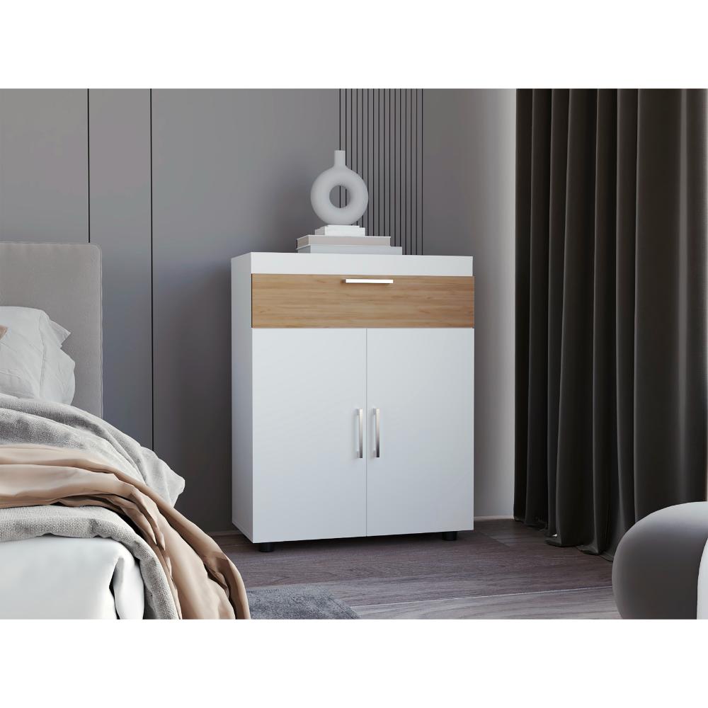 Elaborado en Madera aglomerada MDP, recubierta con láminas melamínicas de excelente calidad, en color Blanco Duqueza y Fresno Europeo
