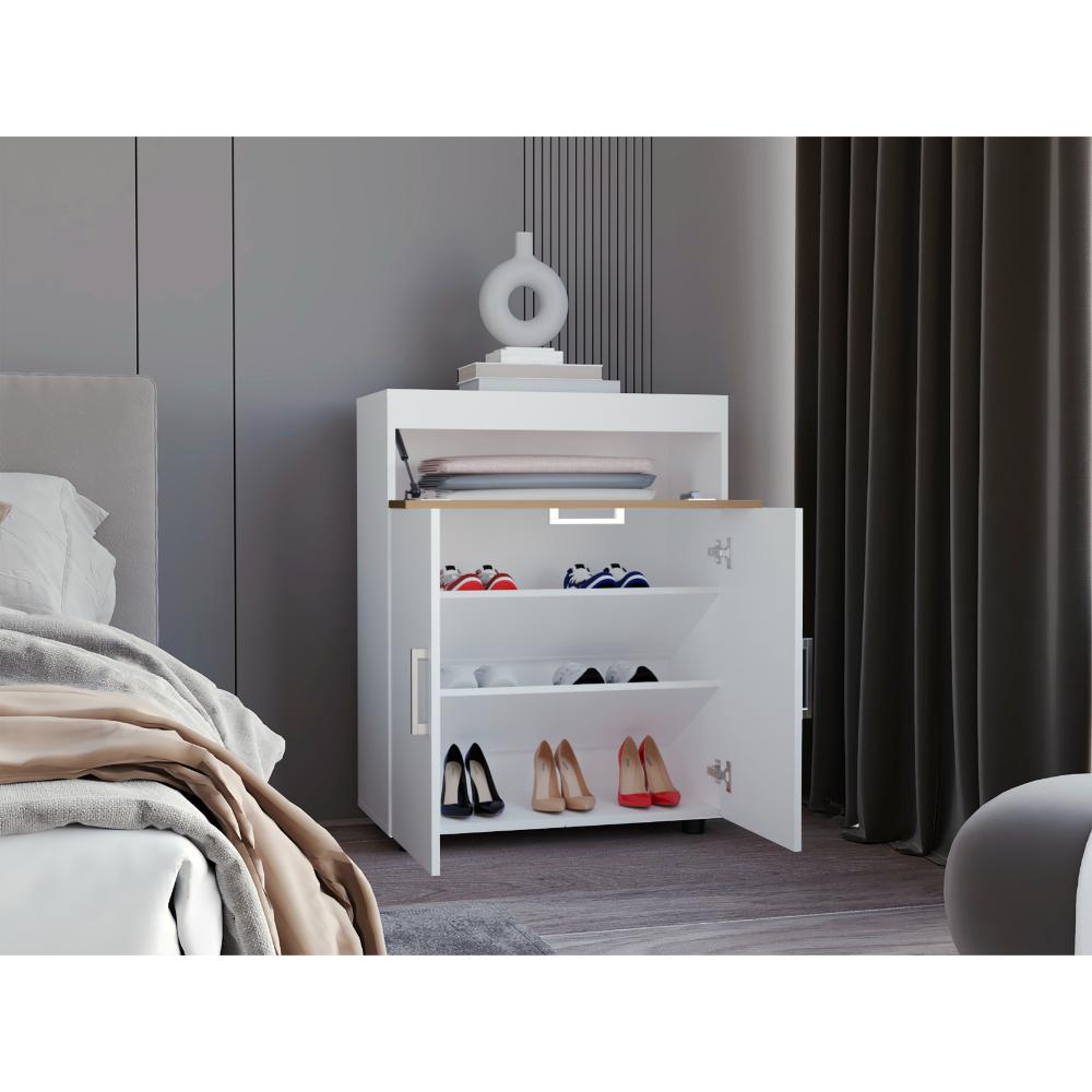 Zapatero Belton, Blanco Duqueza y Fresno Europeo, con tres puertas abatibles y espacio para almacenar zapatos ZF